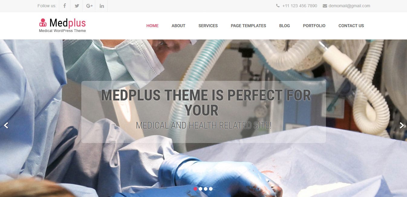专门用于健康相关网站和医疗的主题是 MedPlus Lite,可以通过该主题展示医院、牙医、外科医生、医疗等各种服务。