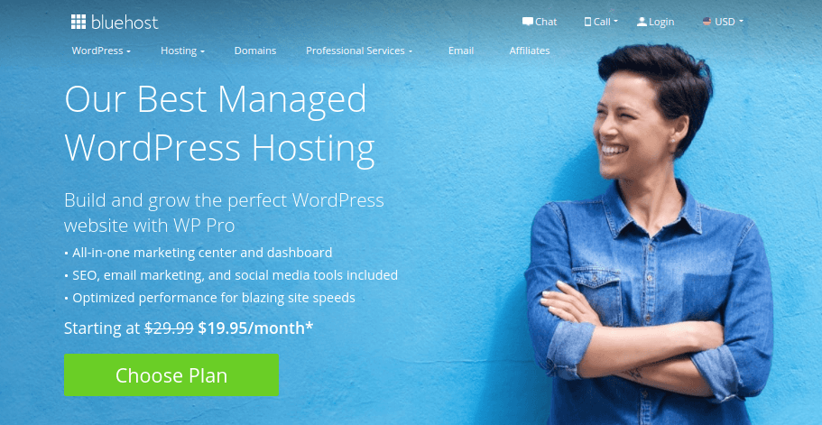 毫无疑问,Bluehost 是 WordPress 最多产的网络主机。 它的服务器为超过 200 万个网站提供六个托管计划,其中三个专用于 WordPress。 它的服务器也支持 Joomla 和 Drupal 等应用程序。