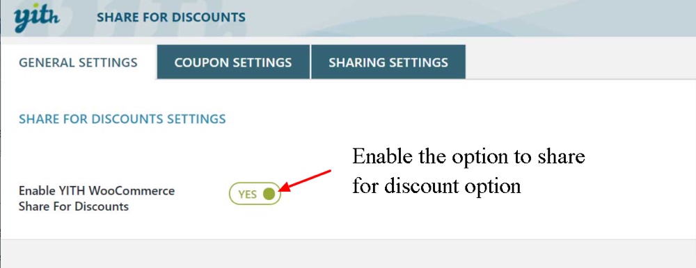 要在 WooCommerce 中启用此选项,您应该首先在 WooCommerce 设置中启用默认优惠券设置。 启用此选项后,YITH 插件中将提供其他设置以启用社交共享选项。