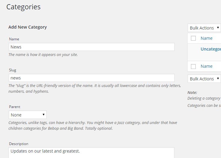 我们将通过使用博客类别来实现这一点。 首先去 帖子 > 分类 在您网站的后端。