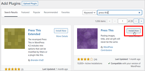 Press This 像任何其他 WordPress 插件一样安装。