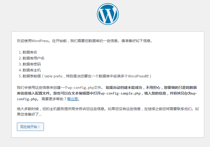 第六步:根据引导一步步配置(表前缀推荐修改下,不要用wp_)