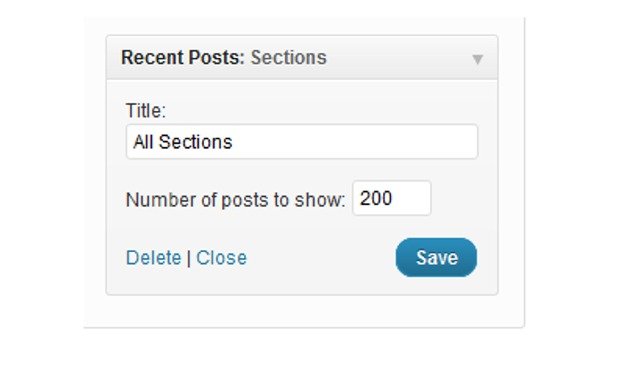 您可以通过使用默认的“最近的帖子”小部件并将帖子数量增加到足够高以包含您拥有的帖子/部分的数量来做到这一点。 (外观 > 小部件)