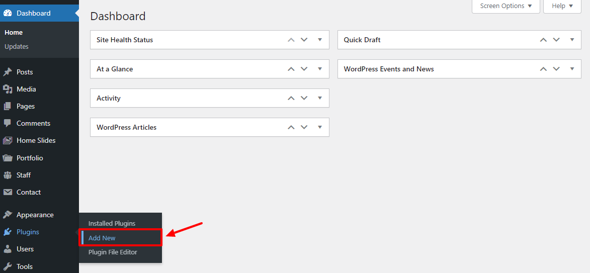 现在,让我们将您的 NitroPack 帐户连接到您的 WordPress 网站。 登录到您的 WordPress 管理仪表板,然后导航到插件 > 添加新的,如下所示。
