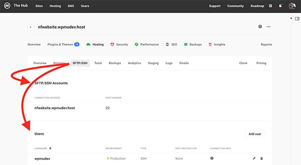 这会将您带到一个屏幕,您可以在其中查看您的 SFTP/SSH 帐户和用户。