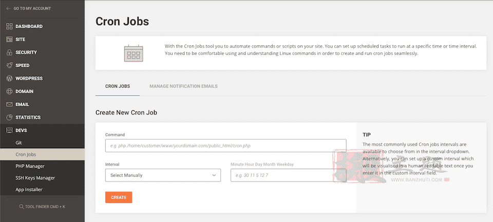 Cron Jobs部分可以让你自动执行命令或脚本,并按计划运行任务。如果你对使用这个工具感兴趣,请阅读SiteGround对Cron的概述。