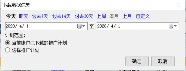 操作区的右上角,是数据下载,这也是非常重要的功能,同时是日常用的非常多的功能。下载数据,时间系统给的是今天、昨天、过去7天、过去14天、过去30天、上周、本月、上月、自定义,这些时间的设置个人觉得百度对数据这环做的还是比较完善的。