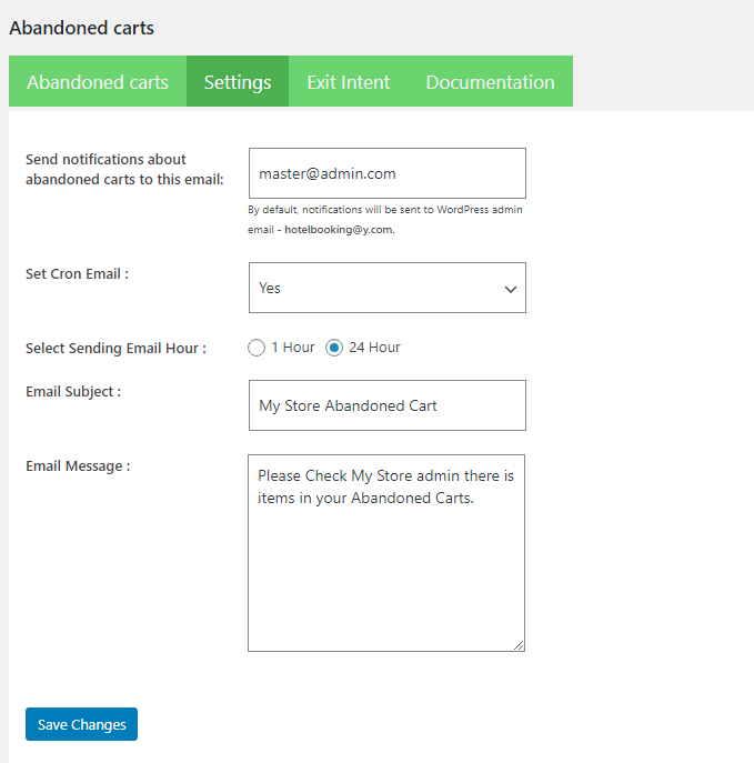 Abandoned Carts->Settings->General Settings 链接下提供了一个名为“选择发送电子邮件时间”的设置,您可以在其中指定考虑放弃购物车的时间。