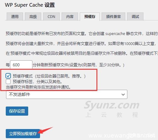 接着,点击“预缓存”,选择预缓存模式,点击“立即预加载缓存”。