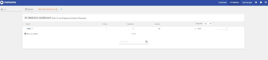 点击访问自己博客网站,Matomo就可以统计到访问信息了。