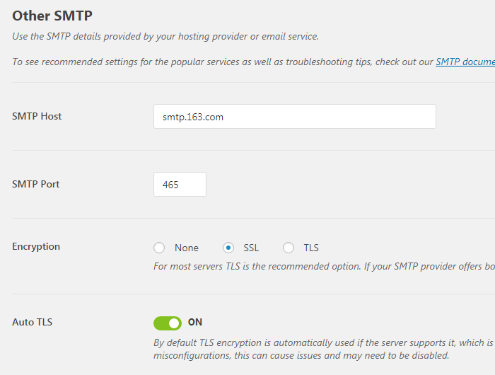 问题二:选择合适的SMTP服务器。看网上都是QQ邮箱的教程,我也是选用了QQ邮箱作为服务器的,但就是报错,后来改用163邮箱的,就成功了。设置如下图,SMTP Host:smtp.163.com,SMTP Port:465,启用 SSL 加密。