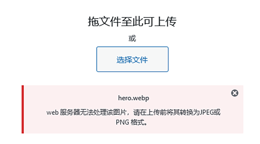 Wordpress 从5.8版本更新开始,其实是已经是可以支持上传 webp 格式的图片了,但是实际情况下你可能仍然会遇到在 Wordpress 后台媒体库上传 webp 图片时出现报错提示无法上传webp格式图片的问题,例如下图这样,那么到底这是什么原因造成的呢?