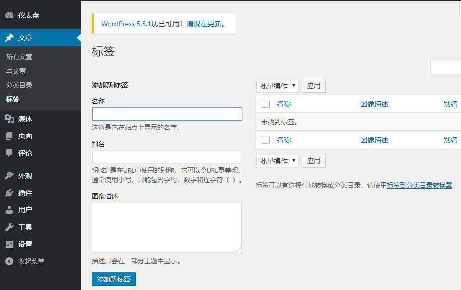 标签是文章的关键词,一篇文章可以添加多个标签,编辑文章时添加的标签也会显示在标签管理里面。标签的设置和分类目录一样,只是不区分层级。标签可以作为网站内容聚合关联来使用。网站前天可以检索所有包含某个标签的文章。如果你有两篇文章,一篇讲解红酒品鉴知识,放到了红酒品鉴这个分类目录里面,另一篇文章讲解红酒酿造工艺,你放到了红酒酿造这个分类目里面。两篇文章都是讲解红酒的,可以给两篇文章都添加 红酒 这个标签。前台用户访问 红酒 这个标签时,会把两篇文章都显示出来。