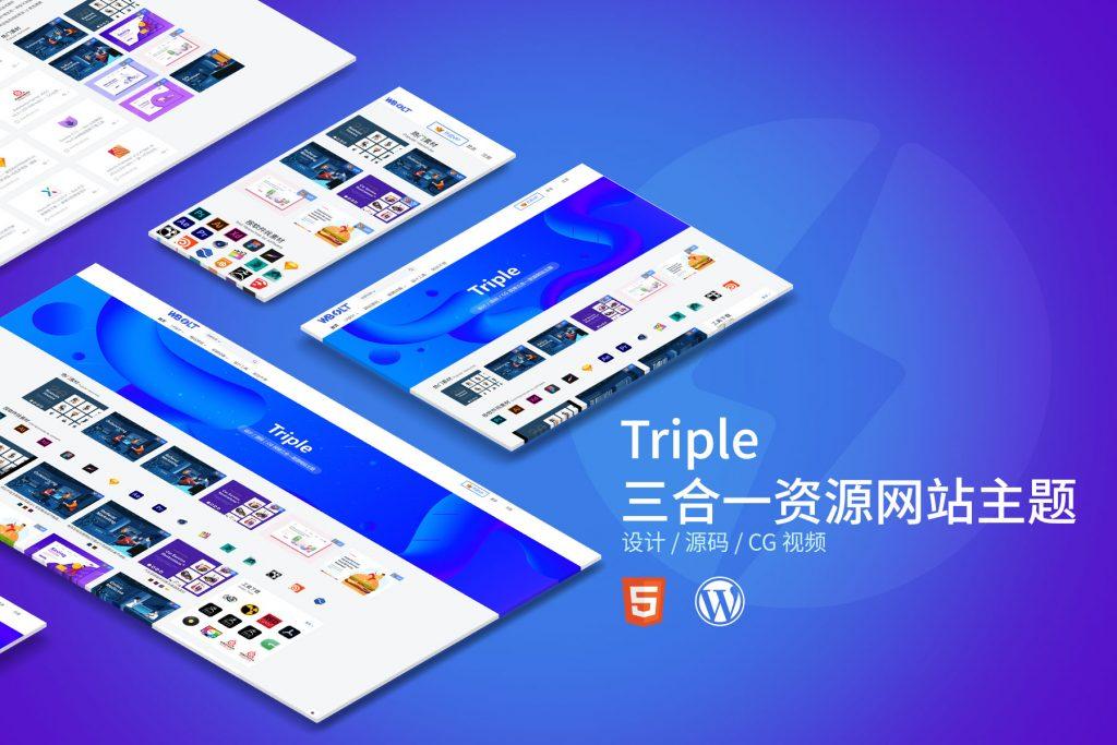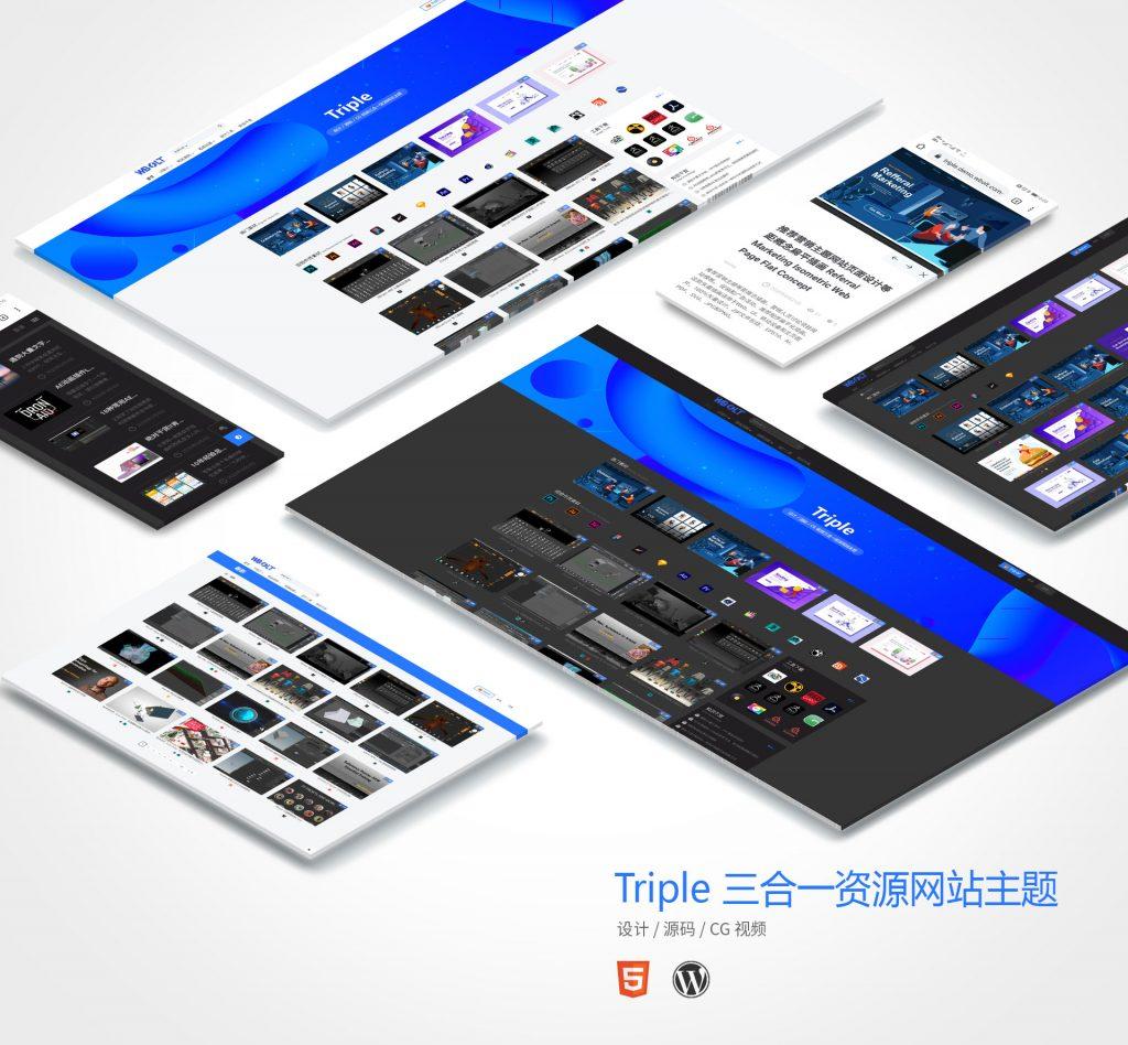 Triple,即three in one三合一的意思。为何称Triple主题为三合一WordPress主题?其一此款WordPress主题支持资源、软件工具及知识干货三种类型内容发布;其二主题支持设计类、源码类及视频CG类的资源发布。