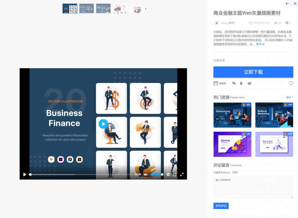 - 突出视频&图片相册的独特资源详情页,更加直观和吸引眼球。
