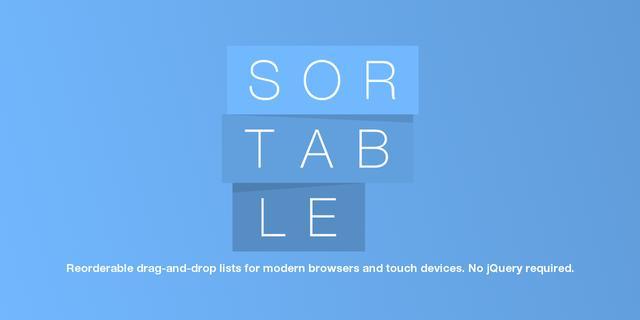 SortableJS是一款用于在现代浏览器和触摸设备上的拖拽插件,不需要jQuery,但支持jQuery,支持Meteor,AngularJS,React,Polymer,Vue,Knockout和任何CSS库,例如Bootstrap。