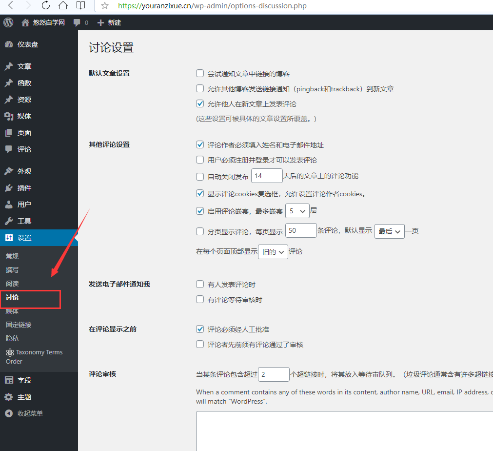 讨论设置主要是对网友平均进行一些限制,下面我们来看看他的设置。