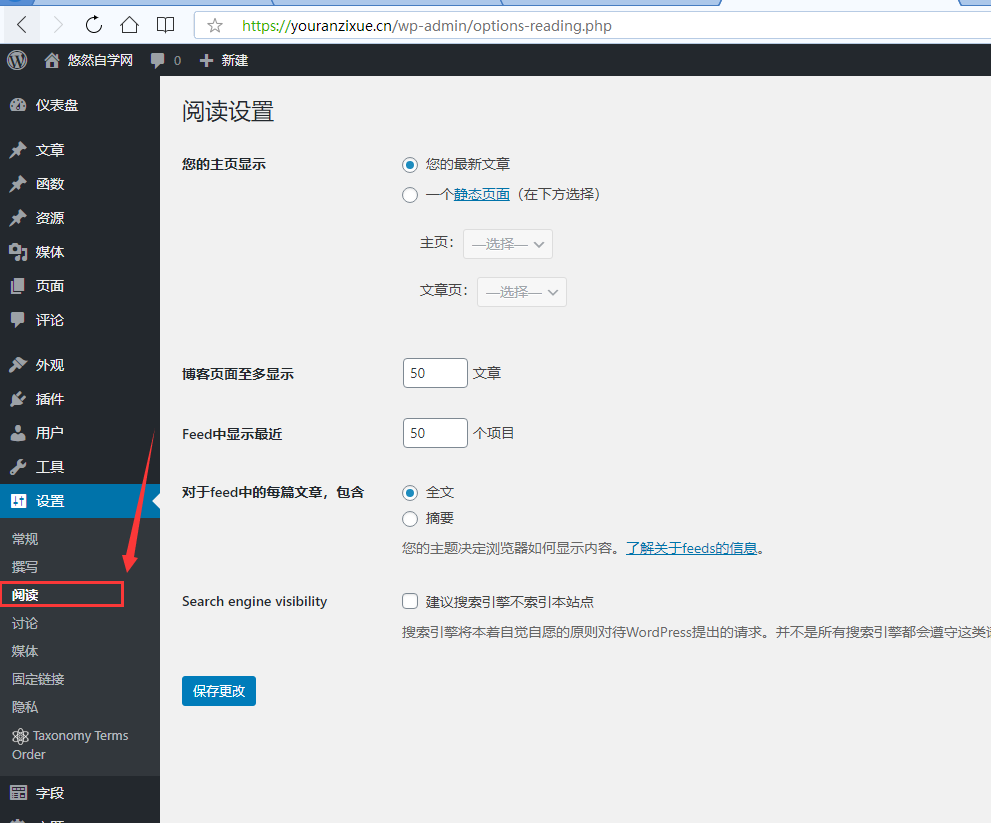 阅读是前台显示的设置,可以改变订阅和首页显示。