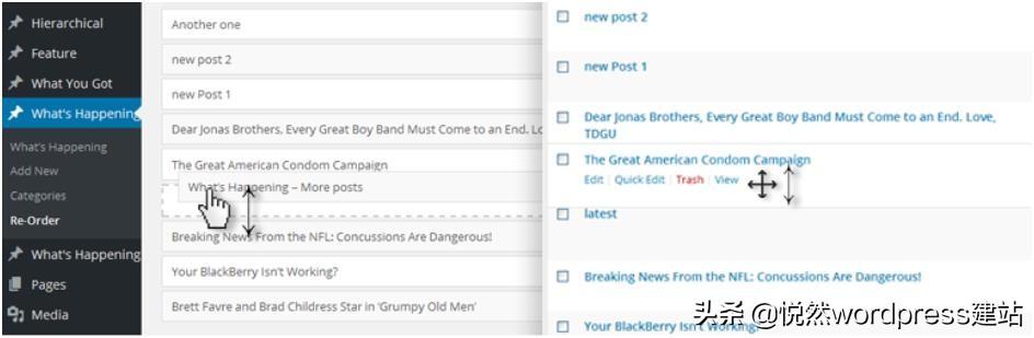 前面的两种调整文章排序的方法都不太灵活,最理想的状态是我们可以像电脑桌面一下用鼠标来手动文章的位置,而这样的功能是可以实现的,只需要使用一个插件即可。