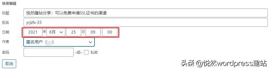 如果是已经发布的文章,你可以在文章列表中快速编辑,修改文章的发布日期就可以了。