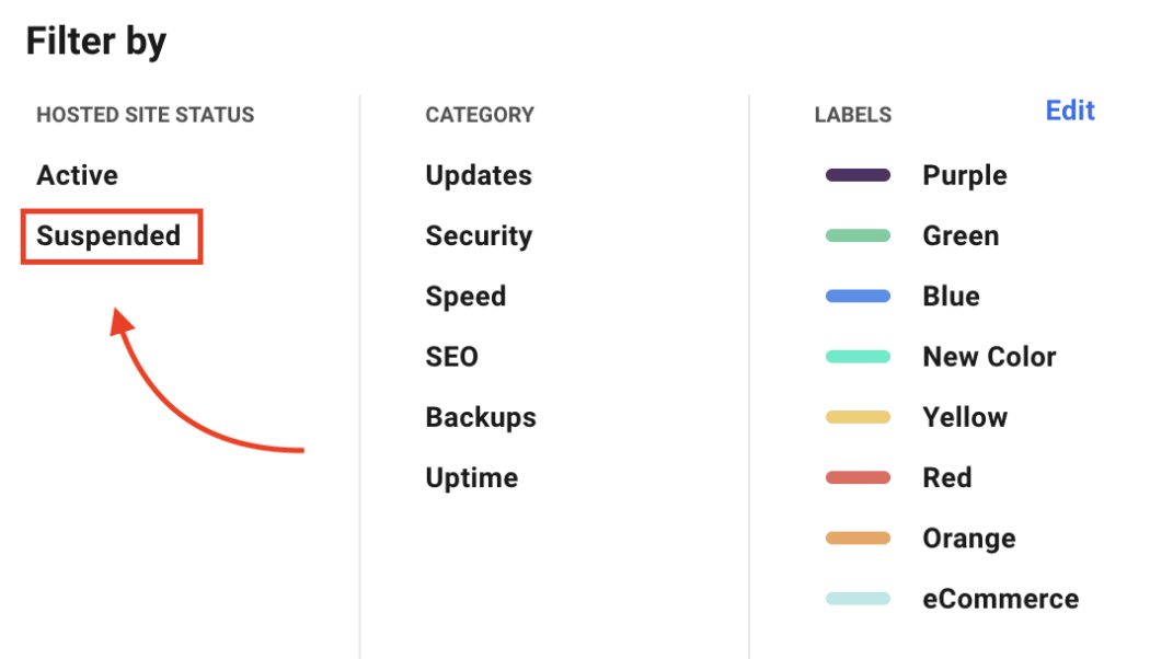 除了有一个站点被暂停的红色指示器外,还有另一种方法可以在The Hub 周围导航并找到您暂停的网站。