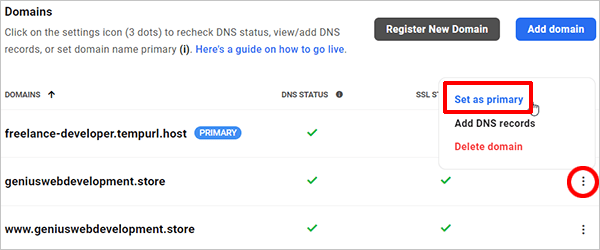 单击域名旁边的省略号(三个垂直点)并选择 重新检查DNS……