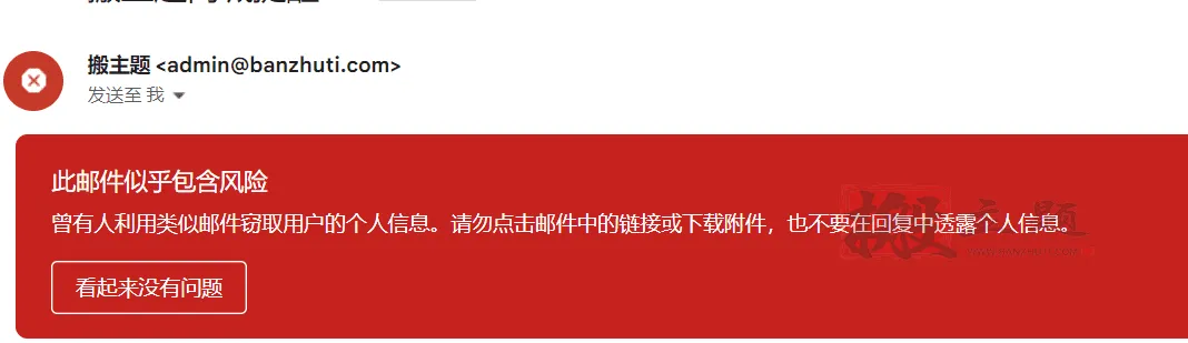 曾有人利用类似邮件窃取用户的个人信息。请勿点击邮件中的链接或下载附件,也不要在回复中透露个人信息。