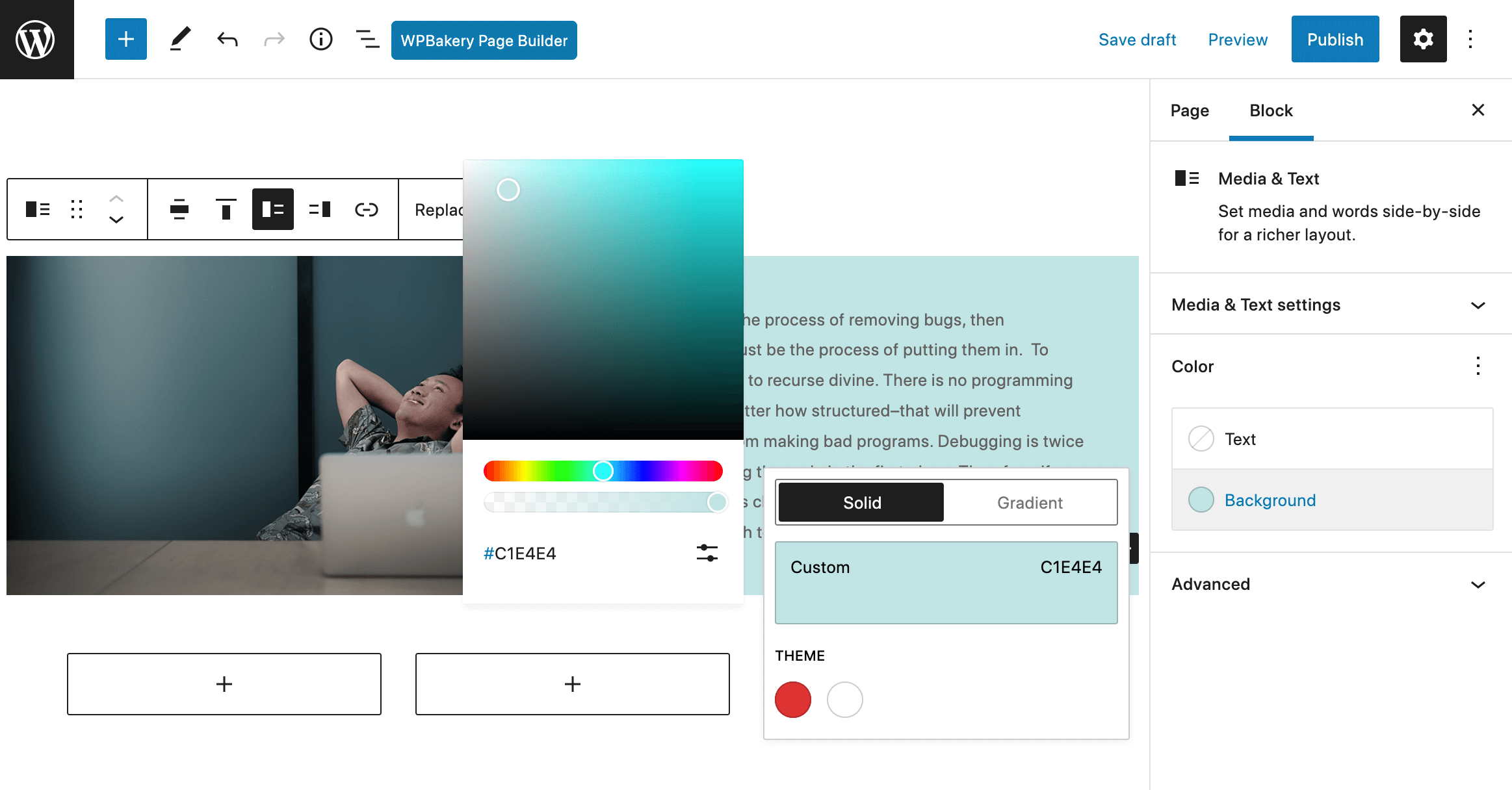 如果您使用的是页面构建器,则只需为构建时要放置图像的块、列或行背景选择一种颜色。您可以在上面看到块背景颜色的古腾堡示例。但是对于带有硬编码模板的主题,您可能需要创建一个子主题来添加自定义回退,或者如果您对代码不满意,请咨询主题开发人员。