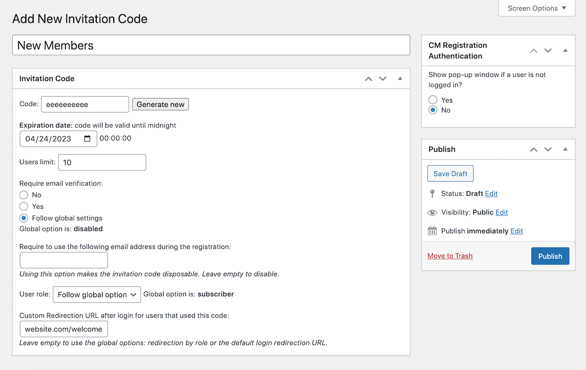 注册和邀请码:通过优化表单、社交登录、邀请码等改善用户注册体验。结合CM Restrict User Account Access,您可以为用户生成唯一的邀请代码以注册免费试用,然后在设定的时间段结束时毫不费力地删除他们的帐户。