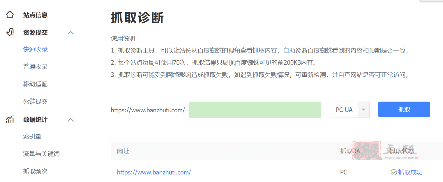 *.baidu.com,*.baiducontent.com,.sogou.com,.sogoucdn.com,可在百度的抓取诊断工具中进行测试,如下图: