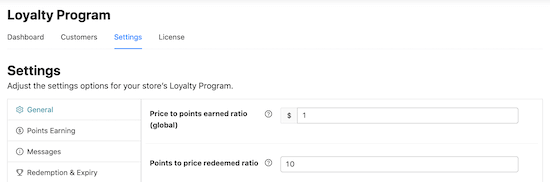 在“价格与获得积分的比率”中,我们可以看到忠诚度计划插件为客户每花费1 美元可获得1 点积分。